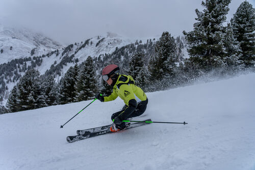 E’ facile da pilotare con il piede, soprattutto in ingresso curva, il che lo rende maneggevole anche a basse velocità, così da non generare timori nelle sciatrici poco prestanti fisicamente.