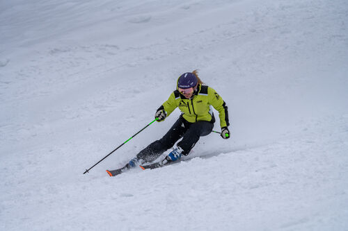 L’impulso non è elevato poichè le code non sono rigide come la spatola ma la presa di spigolo è molto buona, centrando pienamente il profilo descritto dalla casa. Unica pecca: la maneggevolezza, soprattutto ad inizio curva dove è “molto difficile da inserire tramite la rotazione” spiega Michela Speranzoni ma è controbilanciato da un’elevata stabilità e una conduzione al top nella categoria. Dall’altro lato della medaglia dà il meglio si sé sulle curve medio-ampie, è più faticoso da gestire nello stretto “perché difficile da girare e da far uscire dalla curva” chiarisce Laura Jardi.