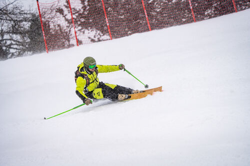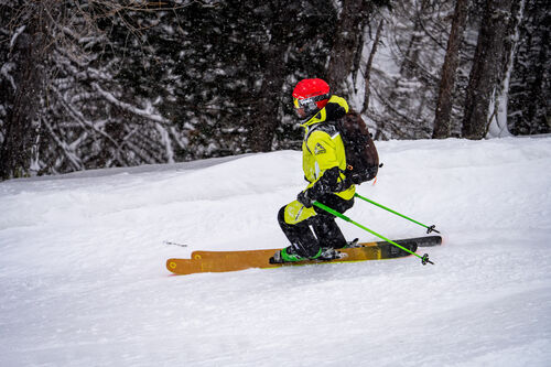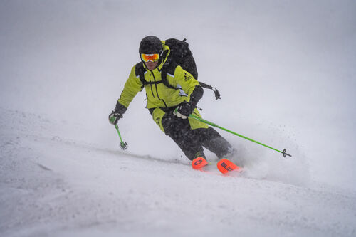 Da montarsi con un set-up da freeride per usarlo in discesa ma può essere usato anche con un attacchino da freeride (più robusto e pesante di un attacchino da scialpinismo) per usarlo in salita con l'ausilio delle pelli sintetiche per andare a cercare spot ancora vergini.