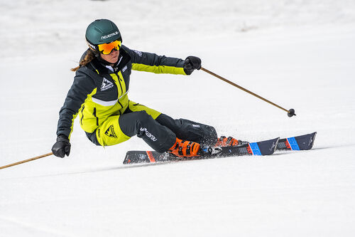 E’ dotato di una buona maneggevolezza e conduzione, il che regala buon comfort di gestione su nevi non troppo dure (Valeria Poncet), ma non c’è tanta reattività e l’impulso è carente. Tuttavia per la tipologia di sciatore a cui si rivolge l’attrezzo, un livello 5 che vuole sciare tutto il giorno, quanto rilevato non è un difetto ma un modo di assecondare una determinata sciata, non ancora pronta alla perfetta conduzione e che necessita, soprattutto, di uno sci semplice e maneggevole.