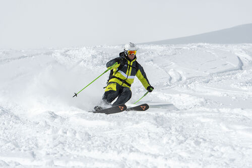 Gli sciatori sulla neve profonda beneficiano delle dimensioni più ampie e questo sci ha anche una guida fluida sulle piste battute.