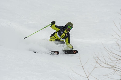 La coda solida sorregge bene, ottimo in fase di atterraggio da salti o cliff, ben strutturato il commento di Umberto Geninatti mentre per il tester Luca Marchetti lo sci risulta buono in tutte le situazioni. Buon comportamento dello sci su neve rotta, ottimo rocker che permette di galleggiare sempre per Alice Gabasio.