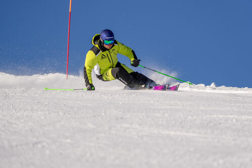 Piacevolezza nel raggio corto, semplicità nella gestione, intuitività, sono tutte caratteristiche di questo nuovo prodotto di casa Dynastar che vuole indirizzare lo sci ad un pubblico di livello 4 fino al 5 e che voglia sciare su pendii modesti e neve morbida. Ideale e consigliato anche per chi voglia provare uno sci tranquillo e da tenere ai piedi per tutto l’arco della giornata senza affaticarsi troppo.