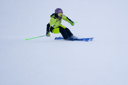 Sono tutti aggettivi che hanno caratterizzato il prodotto al termine della lunga giornata di test svolta sulle nevi di Carezza, in cui è emersa la vera anima racing che i tecnici di Salomon hanno voluto conferire allo sci per destinarlo solamente a sportivi di alto livello. “Lo sci è divertentissimo con una presa di spigolo immediata in curve strette ed una risposta elastica notevole” commenta a caldo Jacopo Bonaccorsi “anche se aumentando la velocità risulta meno stabile, portando la concentrazione dello sciatore a rimanere sempre elevata” conclude. Della stessa opinione è anche il collega Christian Aldegheri che ne evidenzia la stabilità e la reattività, senza sacrificare la trasmissione di sicurezza.