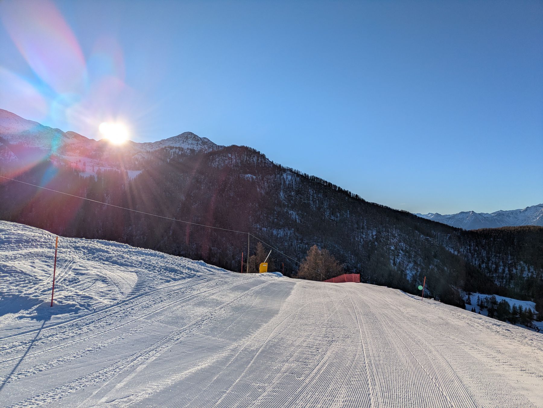 Il tratto iniziale della pista offre una veduta verso Chamois.