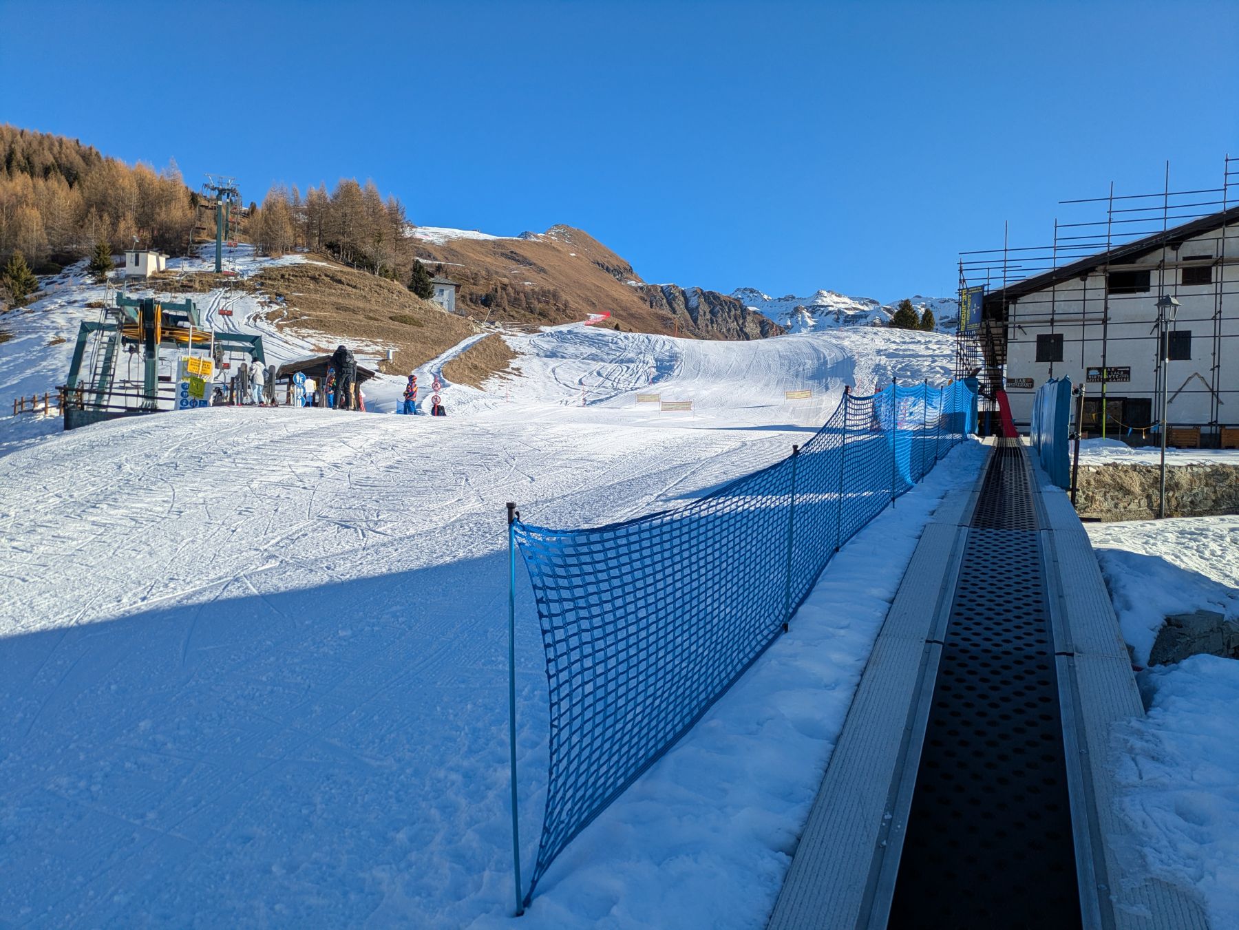 Un breve tapis roulant consente l'accesso alla seconda seggiovia biposto Lago Lod - Teppa.